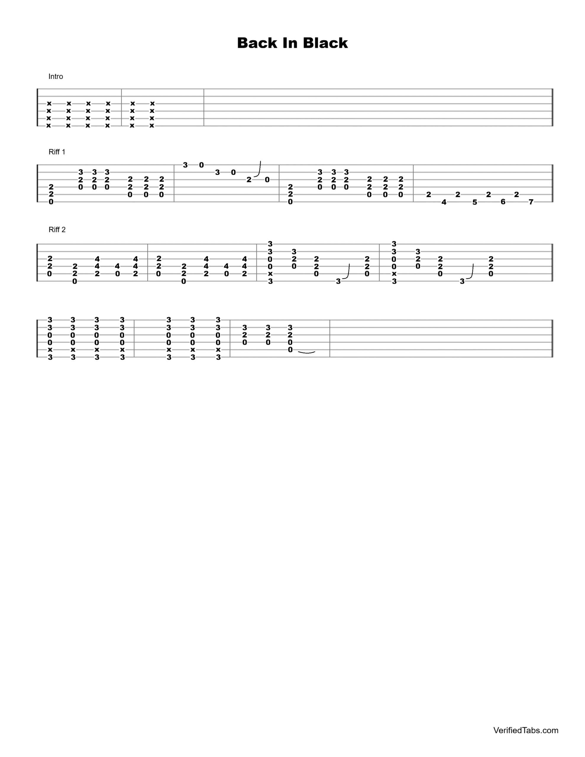 Back In Black Guitar Tab by AC/DC