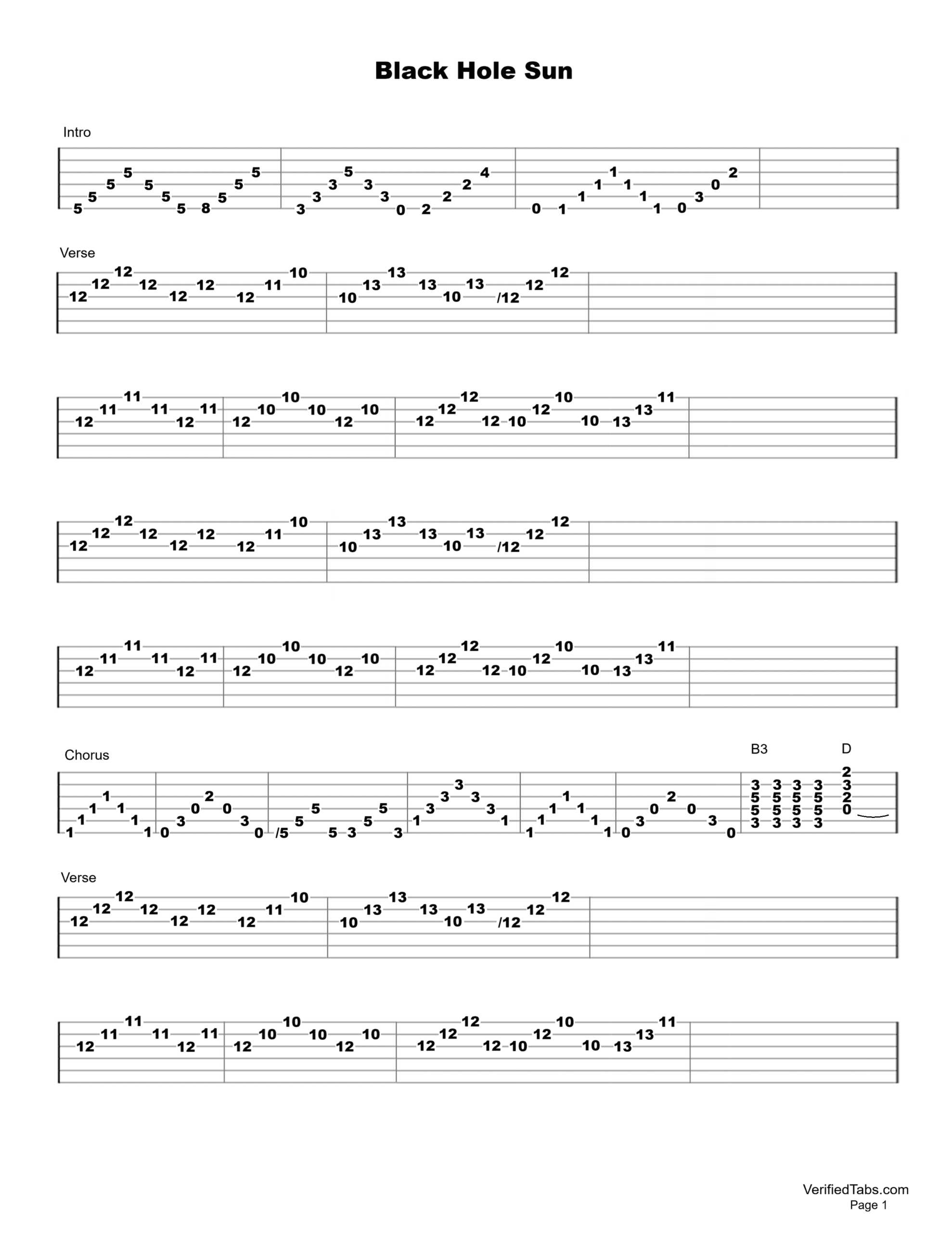 Black Hole Sun Guitar Tab