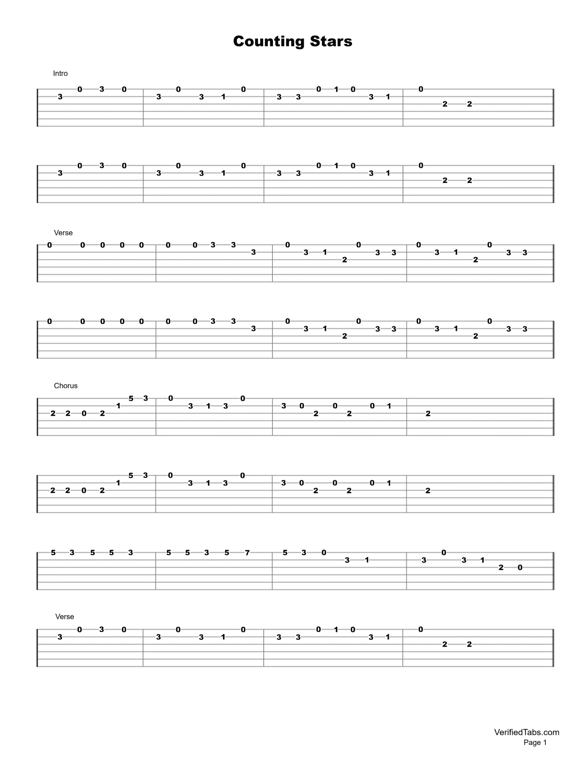 How to play Counting Stars guitar tab by OneRepublic. Browse more from Popular Songs.
