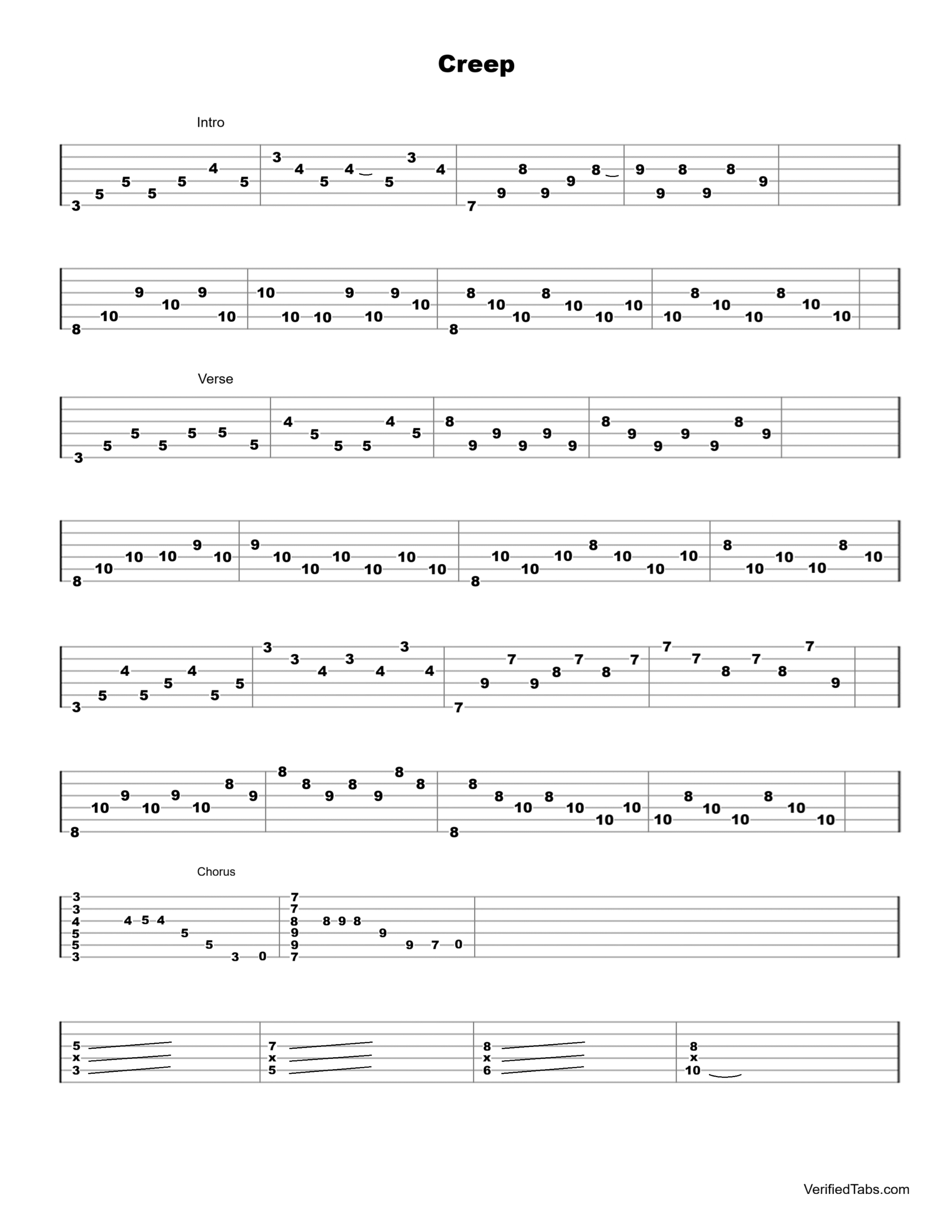 How to play Creep guitar tabs by Radiohead. Browse more from Rock Songs or Popular Songs.