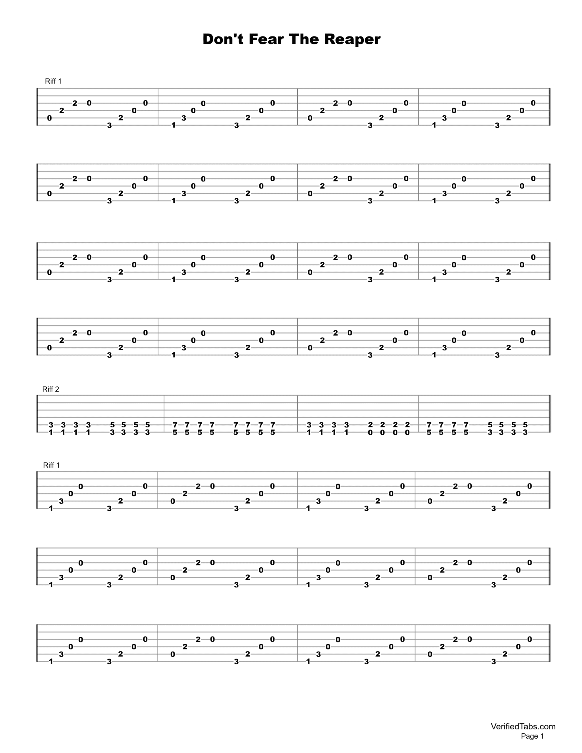 Don’t Fear The Reaper Guitar Tab