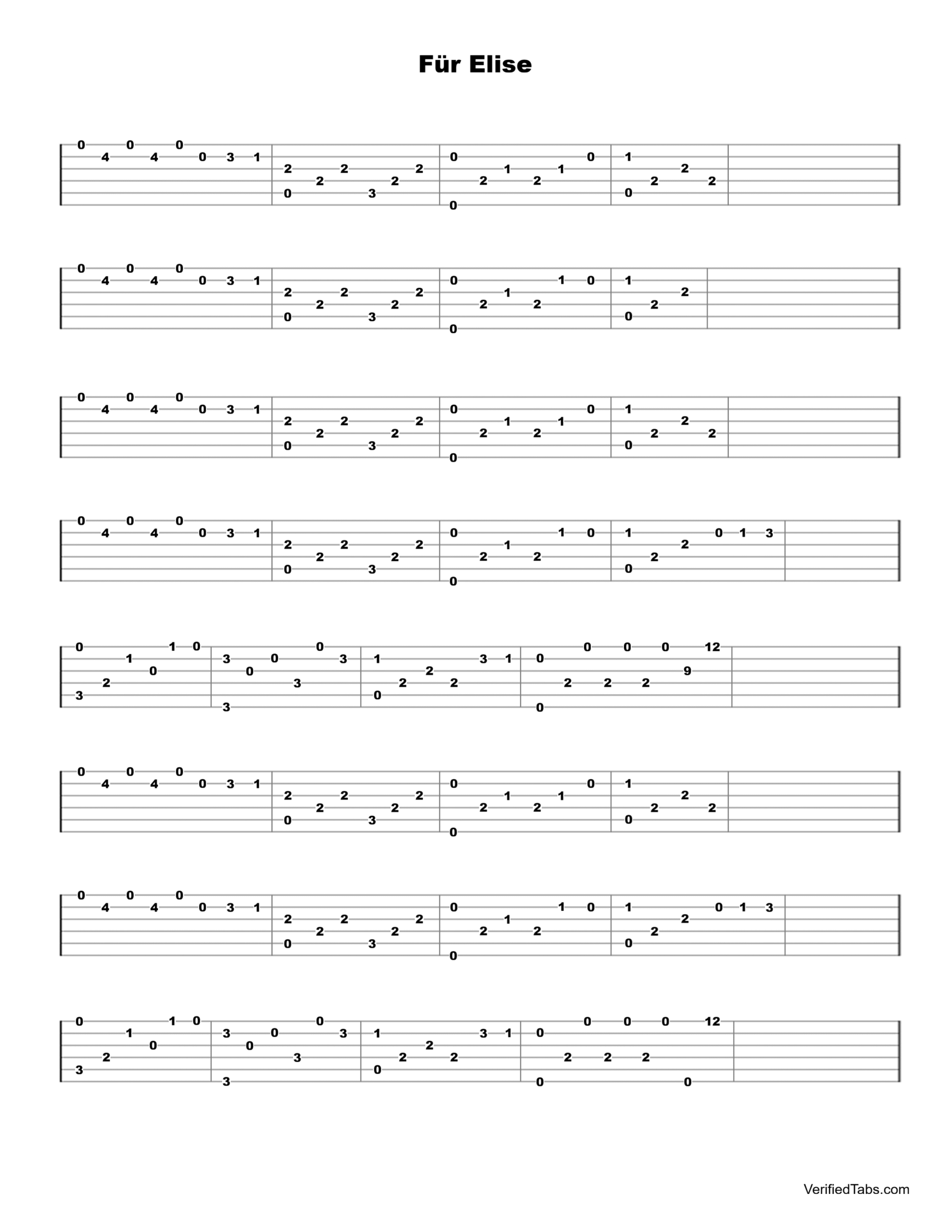 How to play Für Elise guitar tabs by Ludwig van Beethoven. Browse more from Popular Songs.