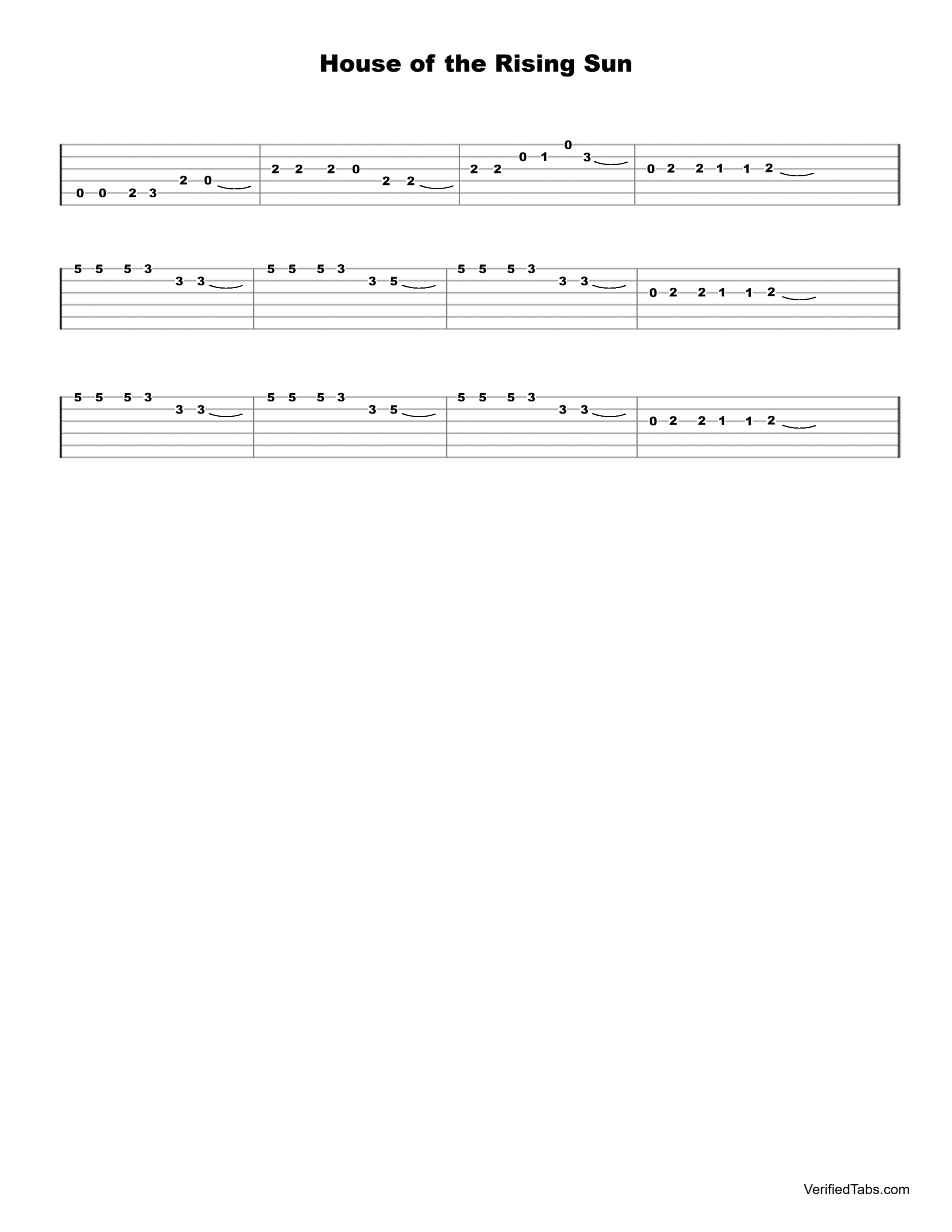 How to play House of the Rising Sun easy guitar tabs by The Animals. Browse more from Rock Songs or Popular Songs.