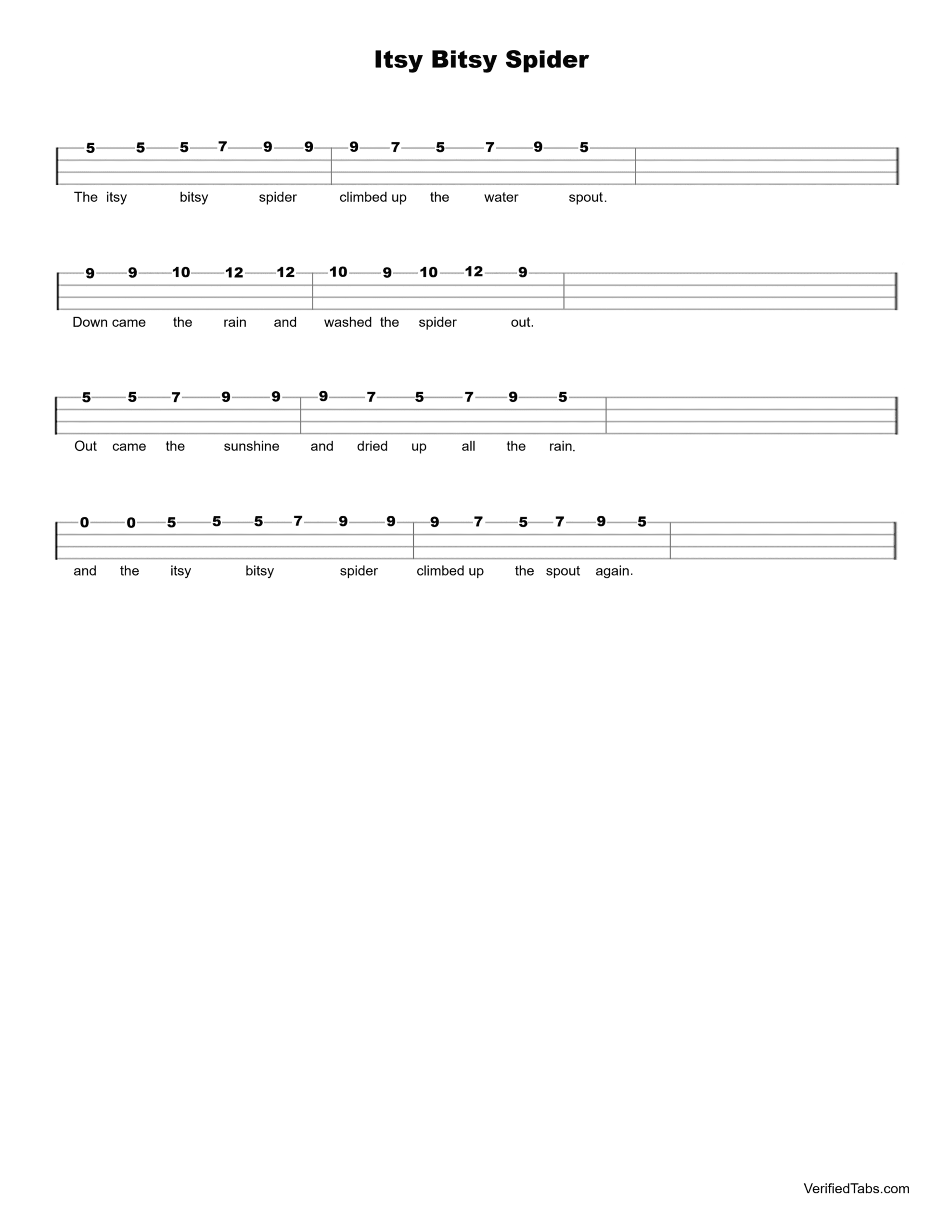 Itsy Bitsy Spider Ukulele Tab