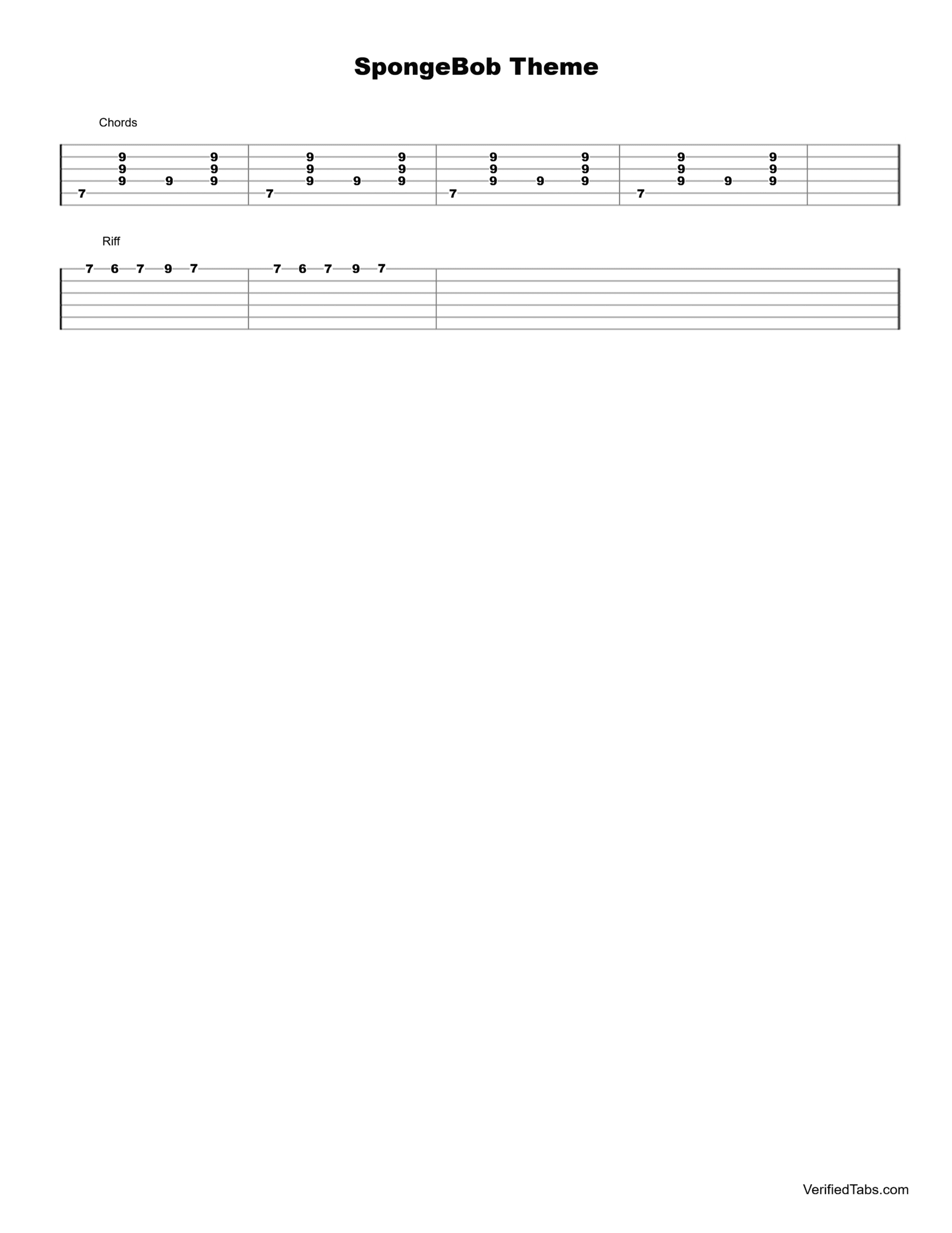 SpongeBob Theme Guitar Tab