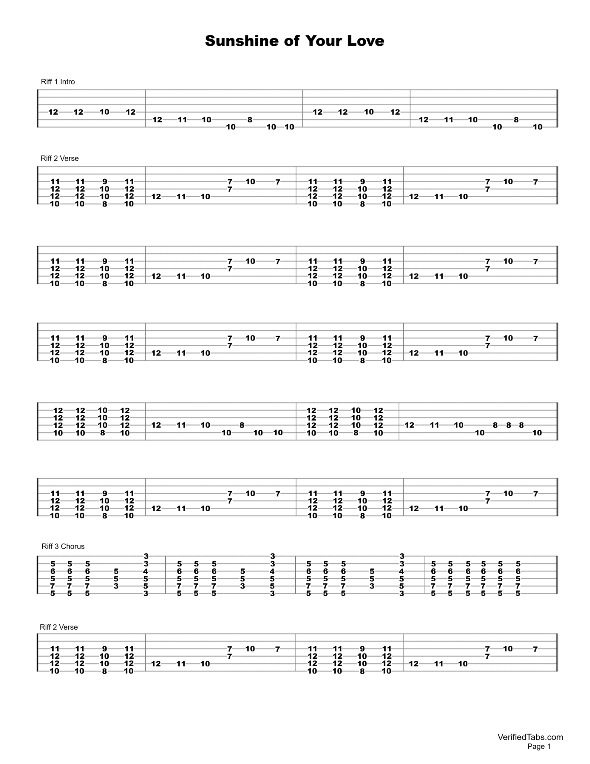Sunshine of Your Love Guitar Tab